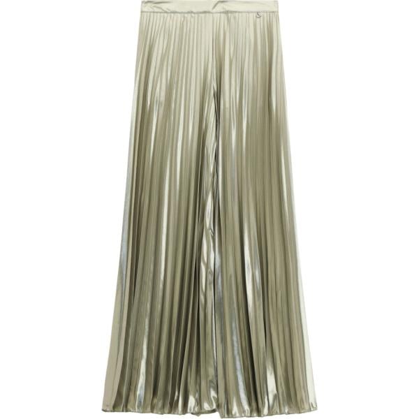 Pantaloni a palazzo da donna in verde oliva plissè a vita alta