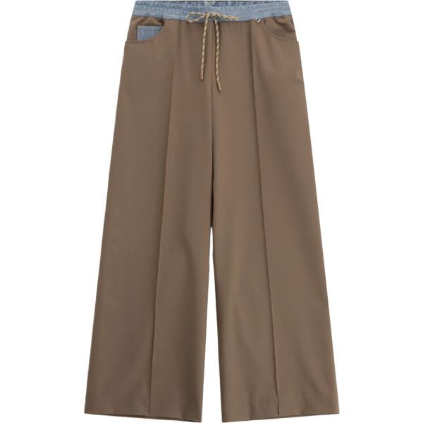 Pantaloni da donna in marrone scuro cropped a vita alta