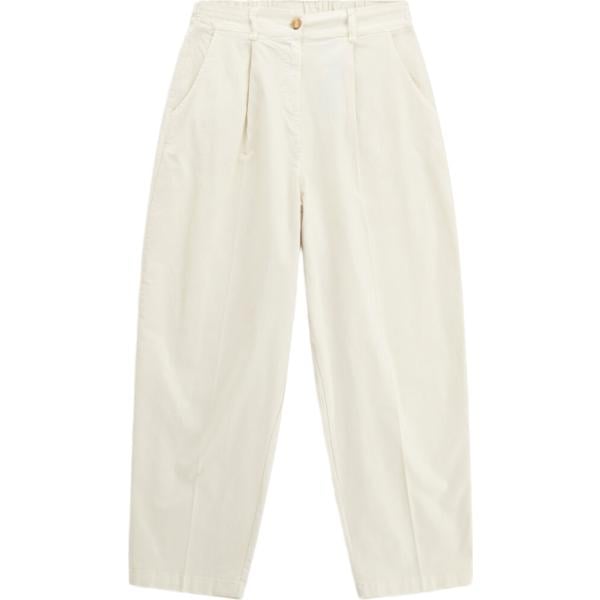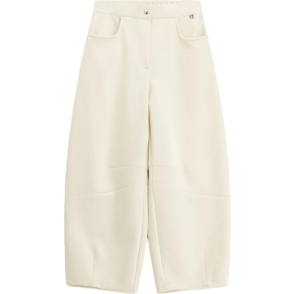 Pantaloni da donna in bianco avorio cropped a vita alta