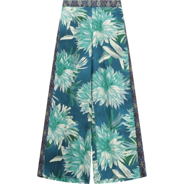 Pantaloni a palazzo da donna in blu medio con stampe a vita alta