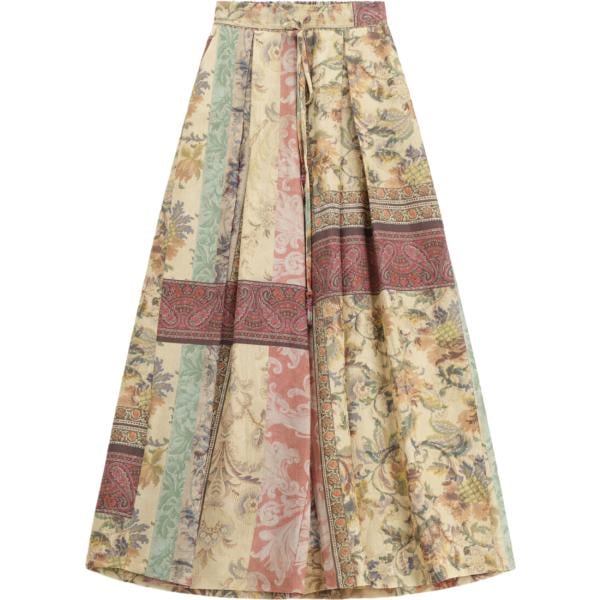 Pantaloni a palazzo da donna in beige sabbia con stampe a vita alta con coulisse