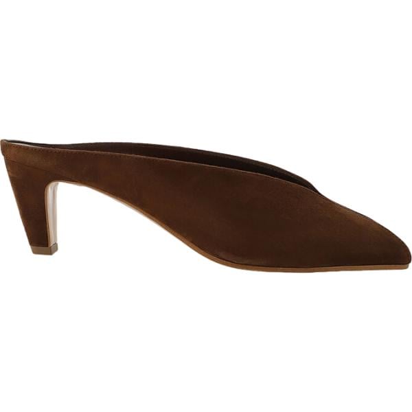 Sabot da donna in marrone scuro effetto scamosciato con tacco in pelle