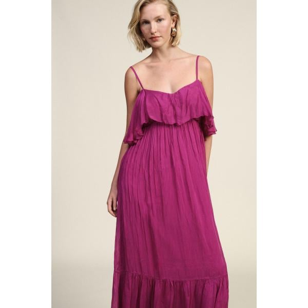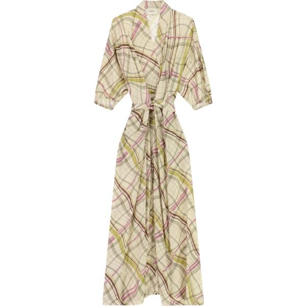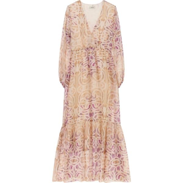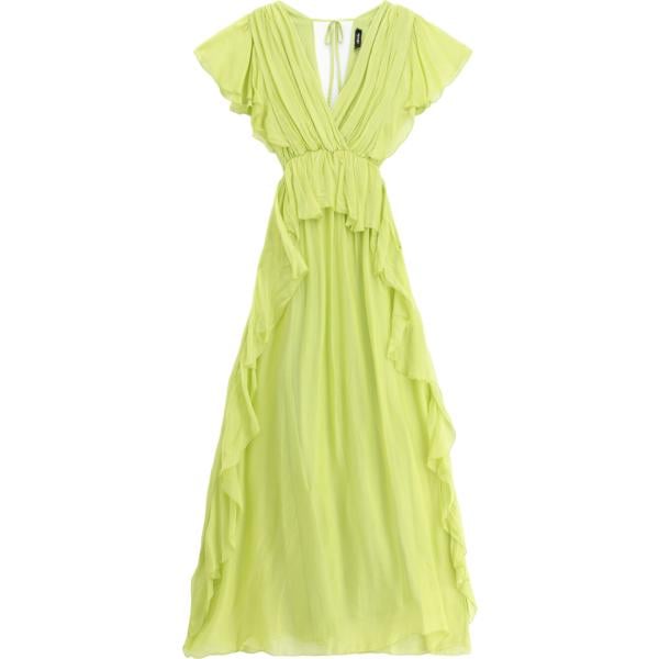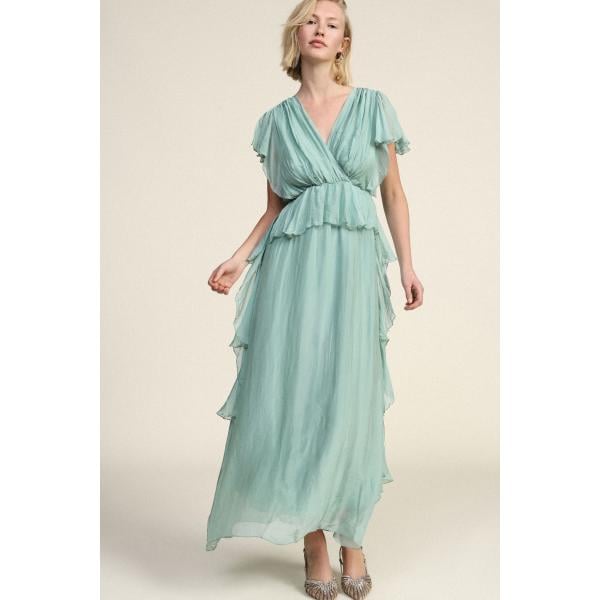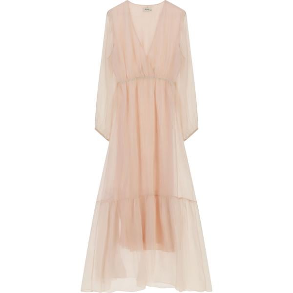 Vestito lungo da donna in beige sabbia collo a v lungo a maniche lunghe