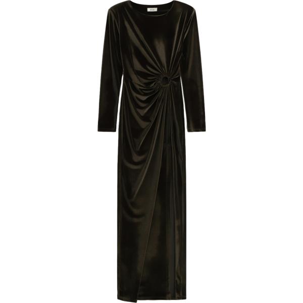 Vestito lungo da donna in marrone scuro con spacco a maniche lunghe