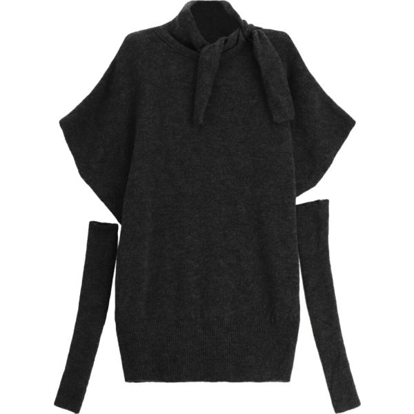 Vestito lungo da donna in nero pece collo alto corto a maniche corte