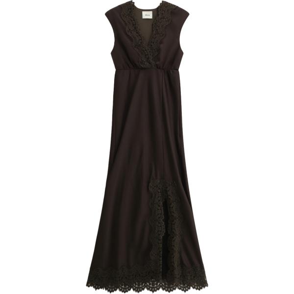 Vestito lungo da donna in marrone scuro con pizzo con spacco