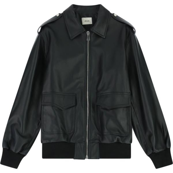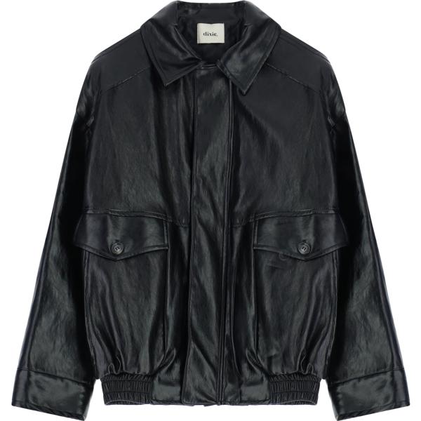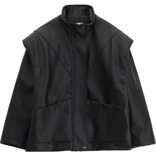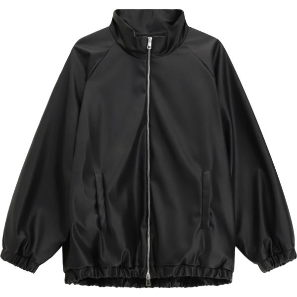 Giacca da donna in nero pece collo a dolcevita con zip in ecopelle