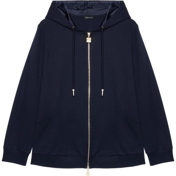 Felpa con cappuccio da donna in blu scuro collo con cappuccio a maniche lunghe con zip in cotone