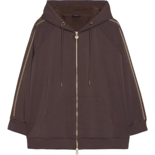 Felpa con cappuccio da donna in marrone scuro collo con cappuccio lungo con zip