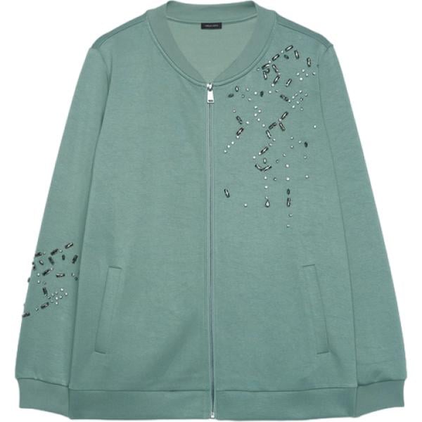 Felpa da donna in verde scuro con zip in viscosa