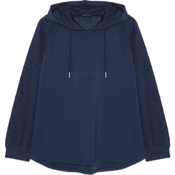 Felpa con cappuccio da donna in blu scuro collo con cappuccio in denim