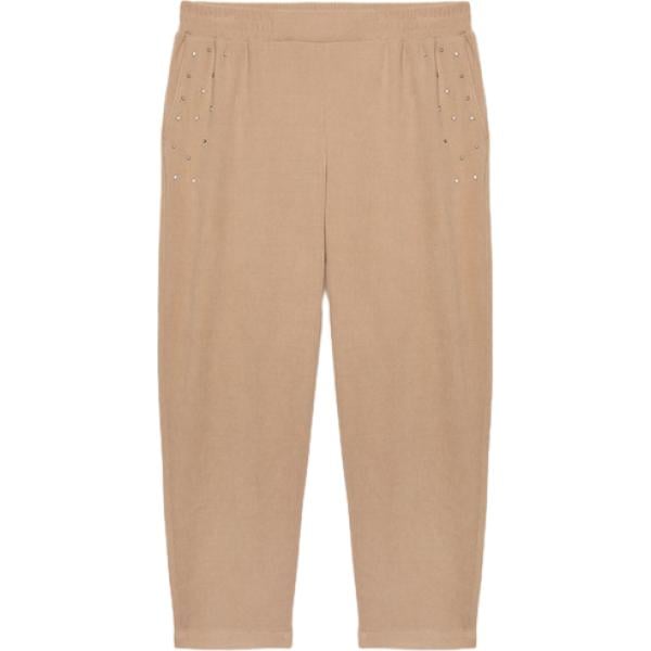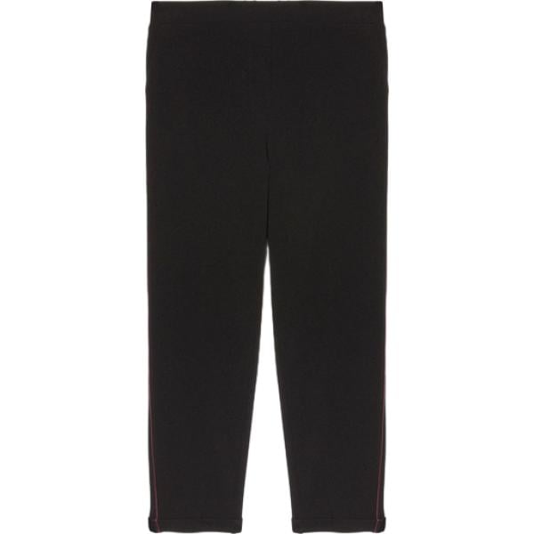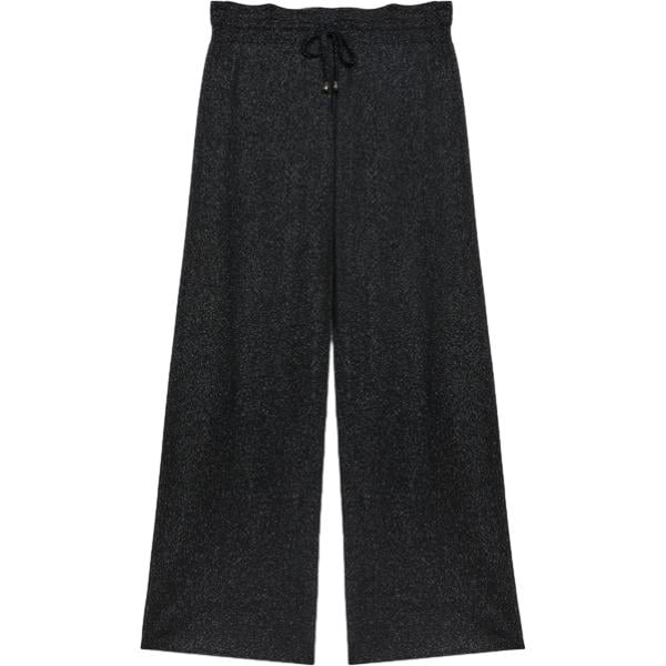 Pantaloni da donna forma svasata in nero pece con pizzo con coulisse in viscosa