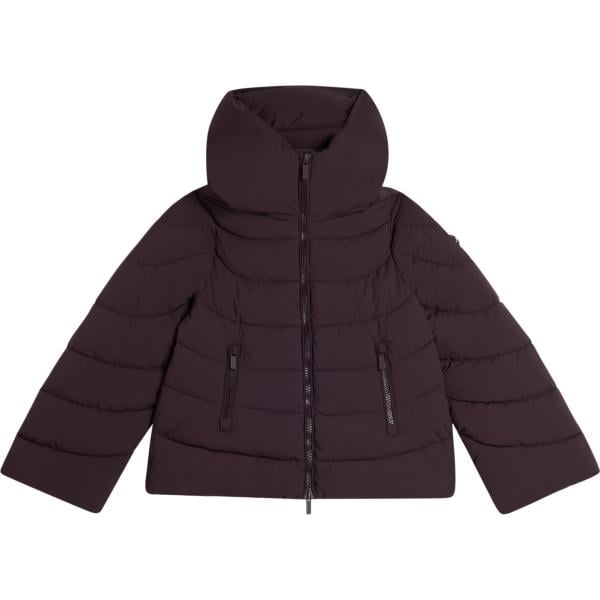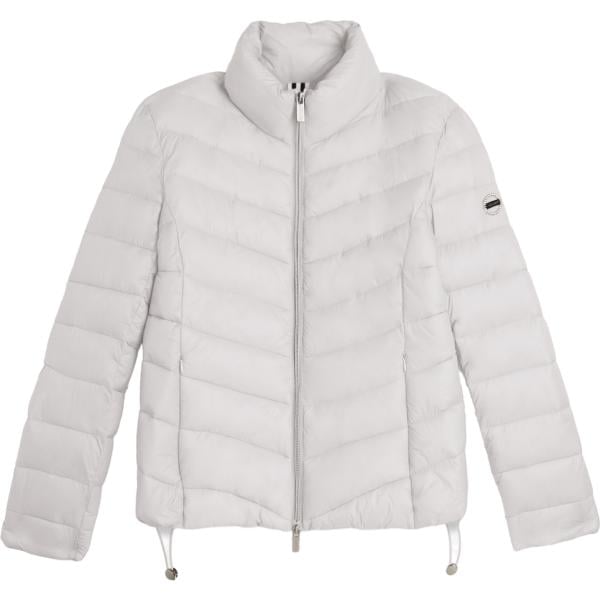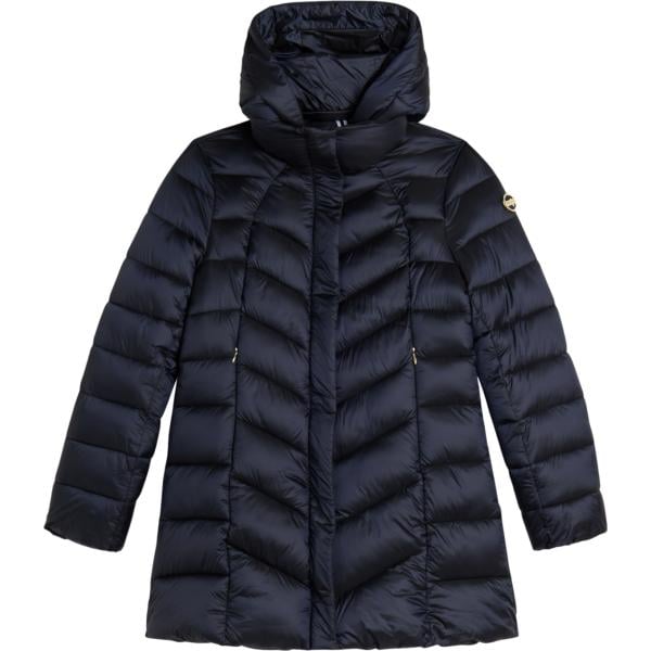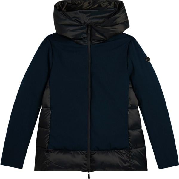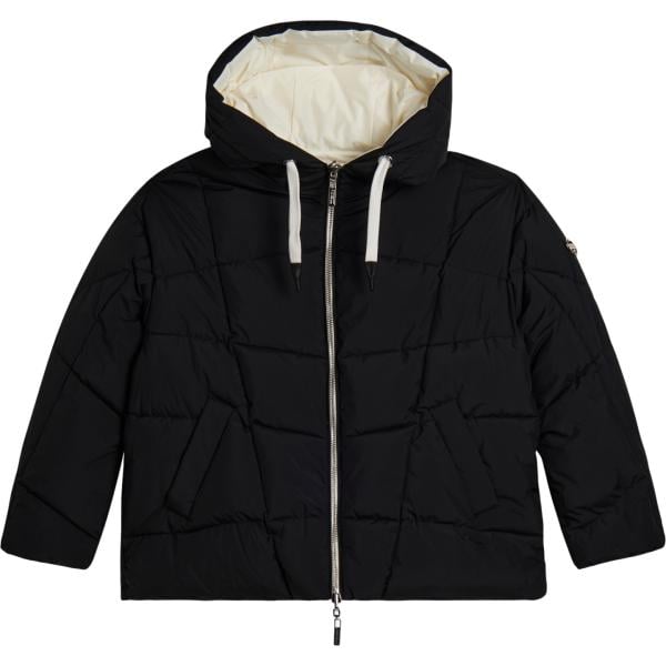 Piumino da donna in nero pece con strass collo con cappuccio con zip