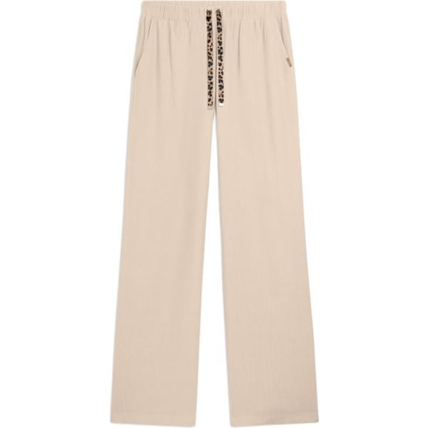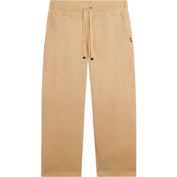 Pantaloni da donna in bianco avorio con strass cropped con coulisse