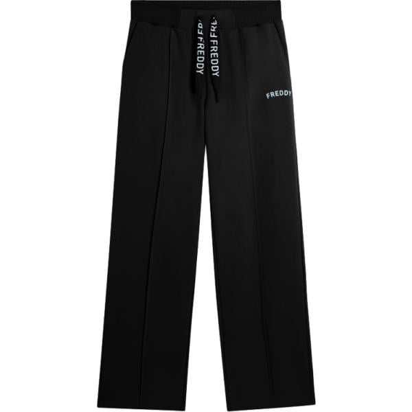 Pantaloni da donna in nero pece con strass con coulisse in plush