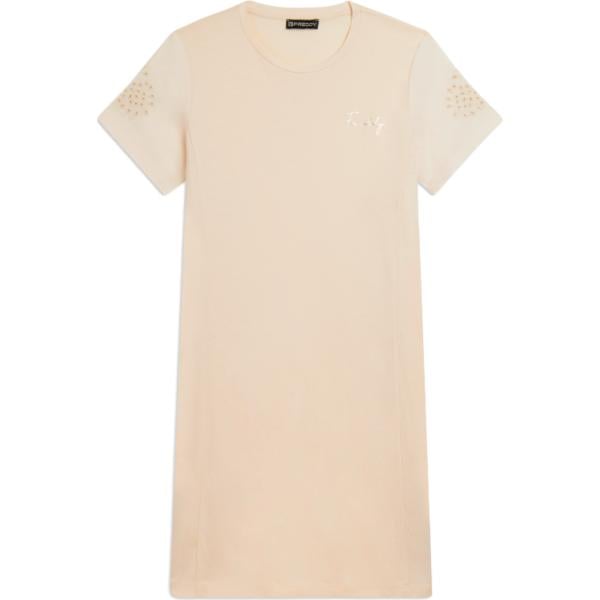Vestito corto da donna in beige sabbia con scollo corto in cotone