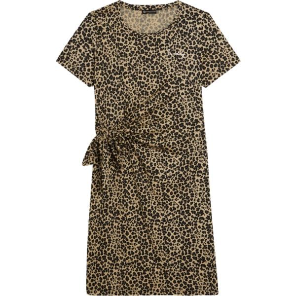 Vestito longuette/midi da donna in marrone chiaro animalier con borchie