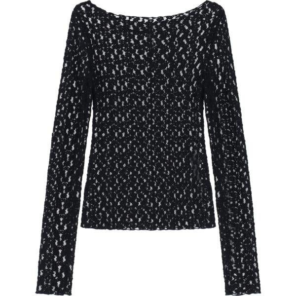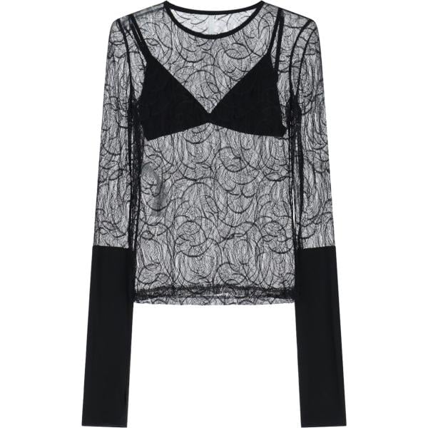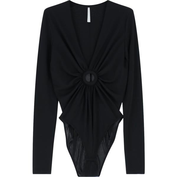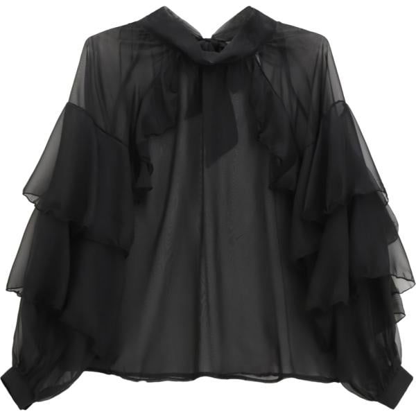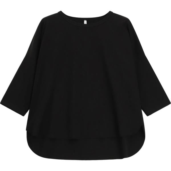 Blusa da donna in nero pece collo a v a maniche lunghe