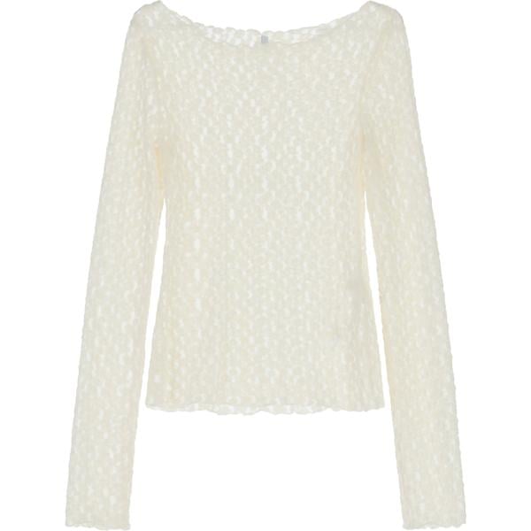 Blusa da donna in bianco avorio con stampe collo a barchetta a maniche lunghe