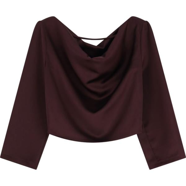 Blusa da donna longuette in marrone scuro con scollo cropped