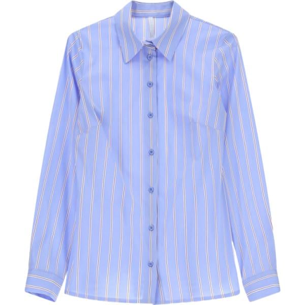Camicia da donna in azzurro a righe collo classico a maniche lunghe con bottoni