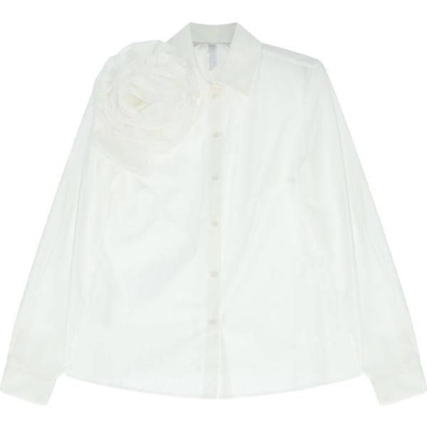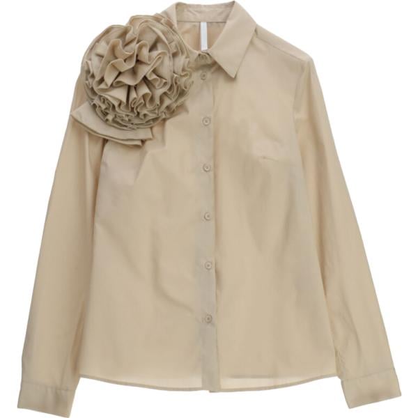 Camicia da donna in bianco avorio collo classico a maniche lunghe