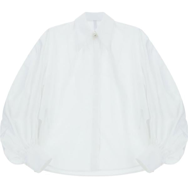 Camicia da donna oversize in bianco neve collo classico a maniche lunghe