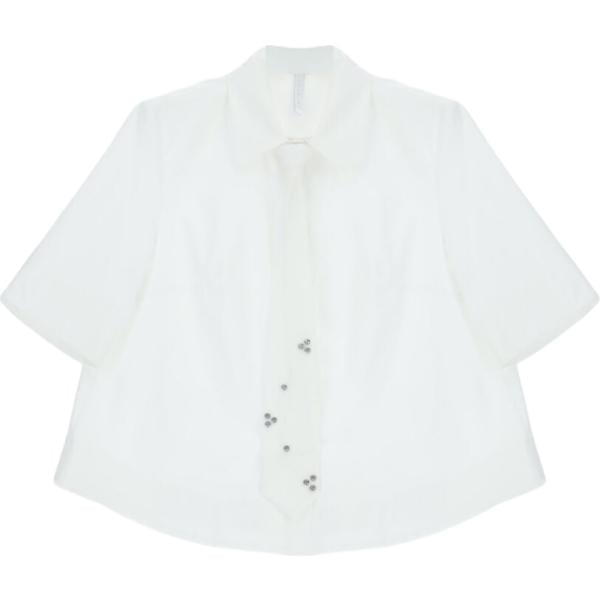 Camicia a maniche corte da donna in bianco neve collo classico cropped a maniche corte con bottoni