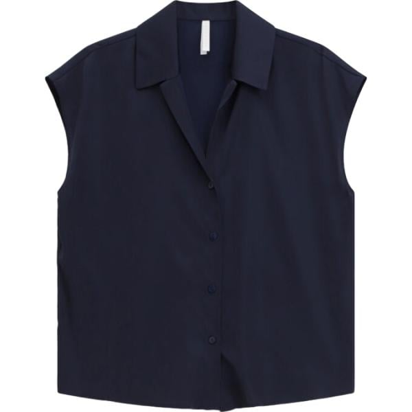 Camicia a maniche corte da donna in blu scuro collo classico senza maniche