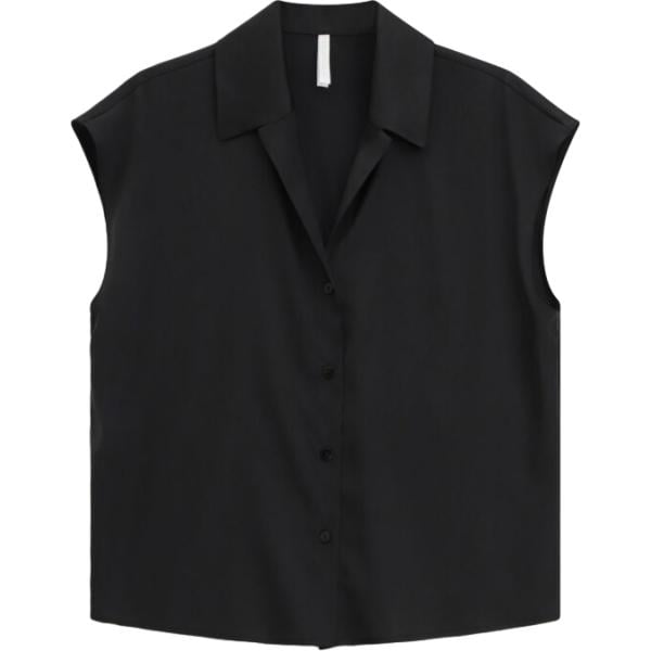 Camicia a maniche corte da donna in nero pece collo classico senza maniche