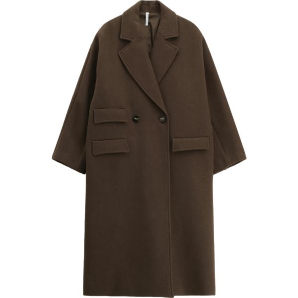 Cappotto da donna in marrone scuro collo a dolcevita con bottoni