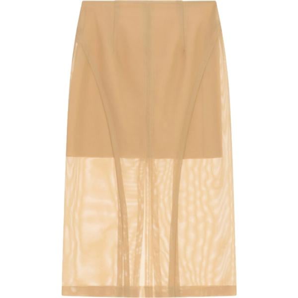 Gonna longuette da donna in marrone chiaro a vita alta