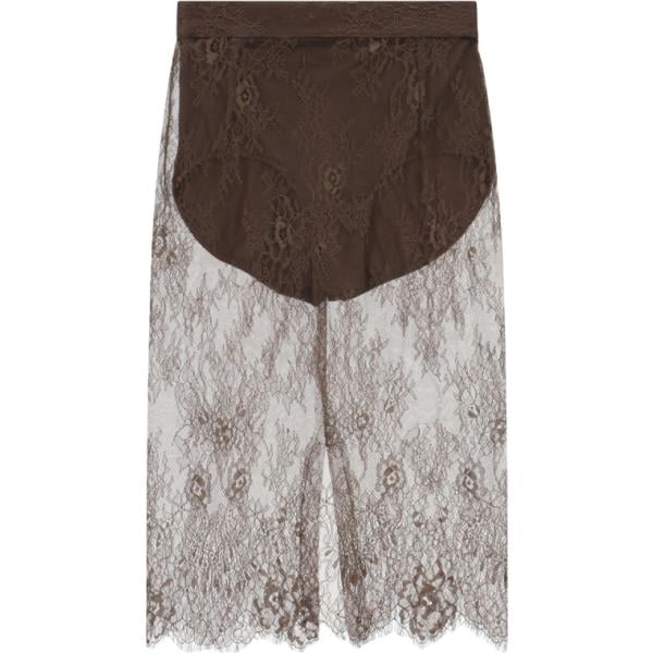 Gonna longuette da donna in grigio chiaro a fiori con pizzo a vita alta