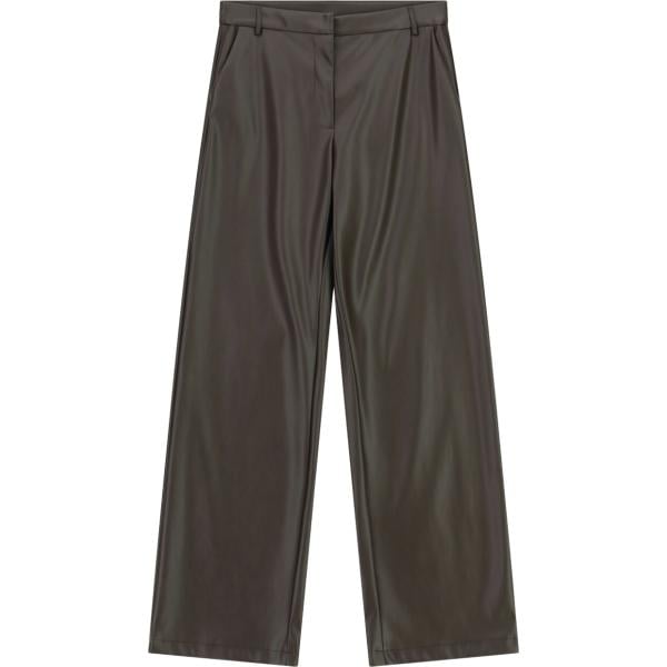 Pantaloni da donna in marrone scuro a vita alta in ecopelle
