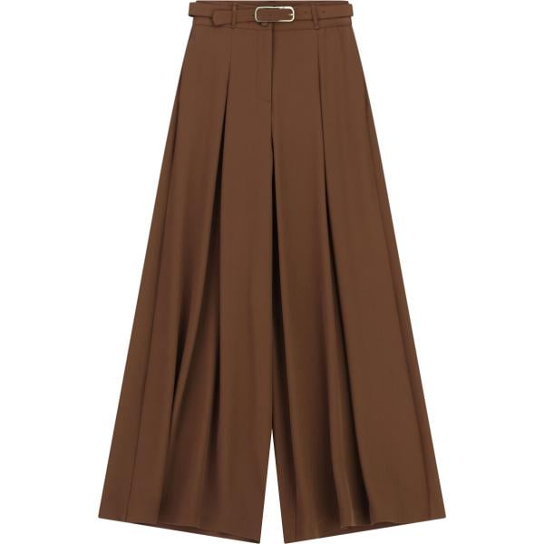 Pantaloni a palazzo da donna in marrone scuro a vita alta con cintura