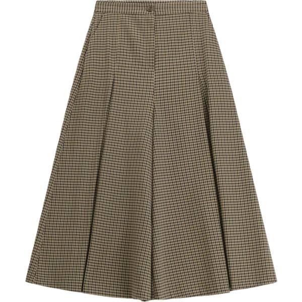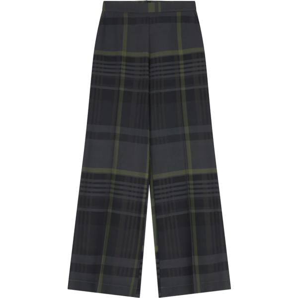 Pantaloni a palazzo da donna in verde oliva a quadri a vita alta
