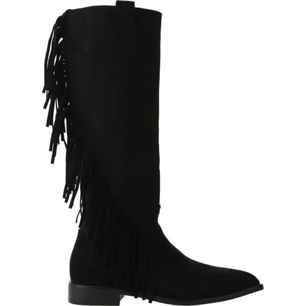 Stivali sopra il ginocchio da donna in nero pece con frange con tacco