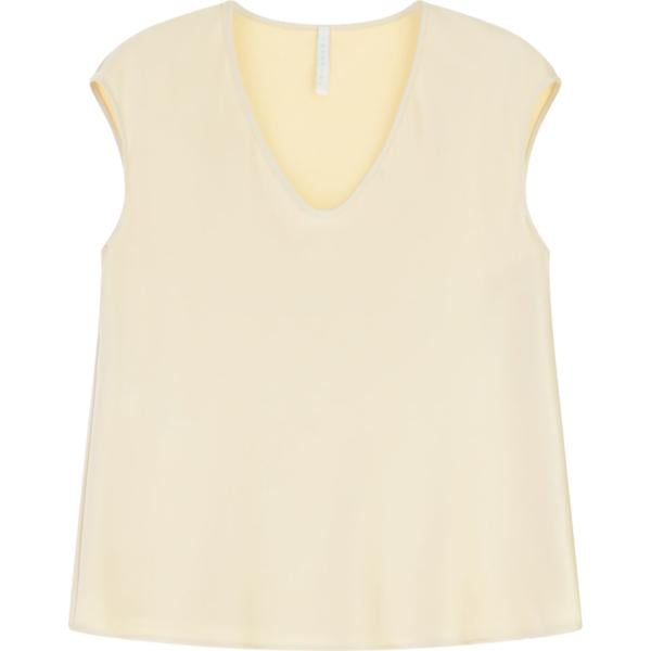 Top da donna in beige sabbia collo a v senza maniche