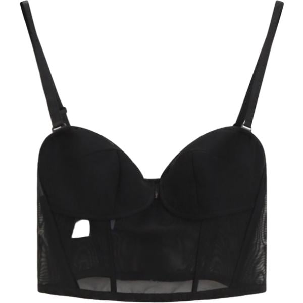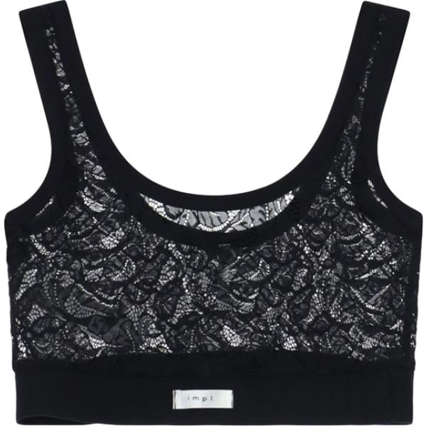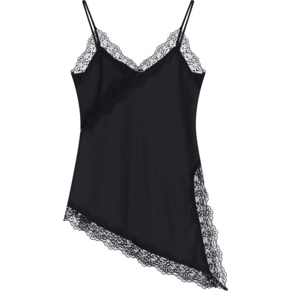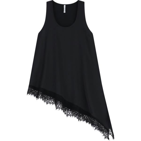 Top da donna forma asimmetrica in nero pece con pizzo con scollo