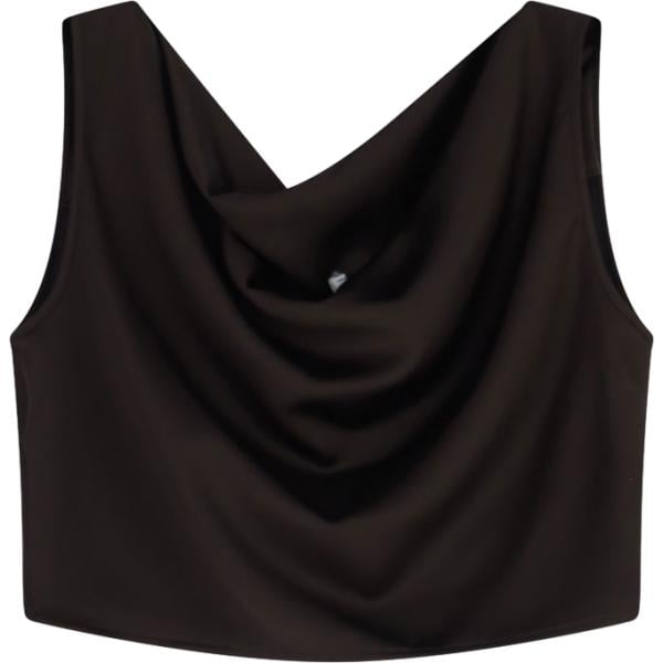 Top da donna in marrone scuro con scollo corto senza maniche