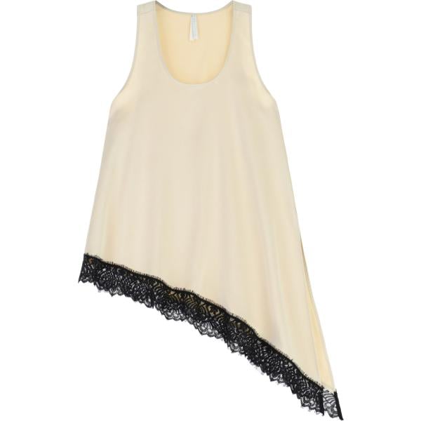 Top da donna forma asimmetrica in beige sabbia con pizzo con scollo