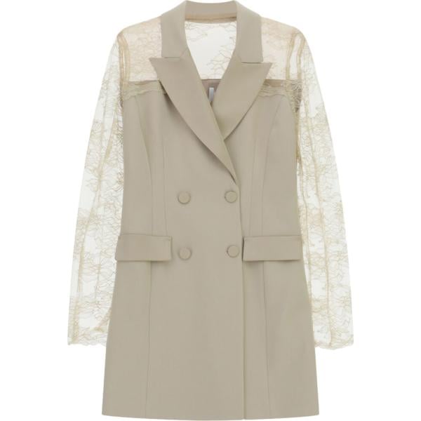 Vestito corto da donna in beige sabbia con pizzo collo classico corto