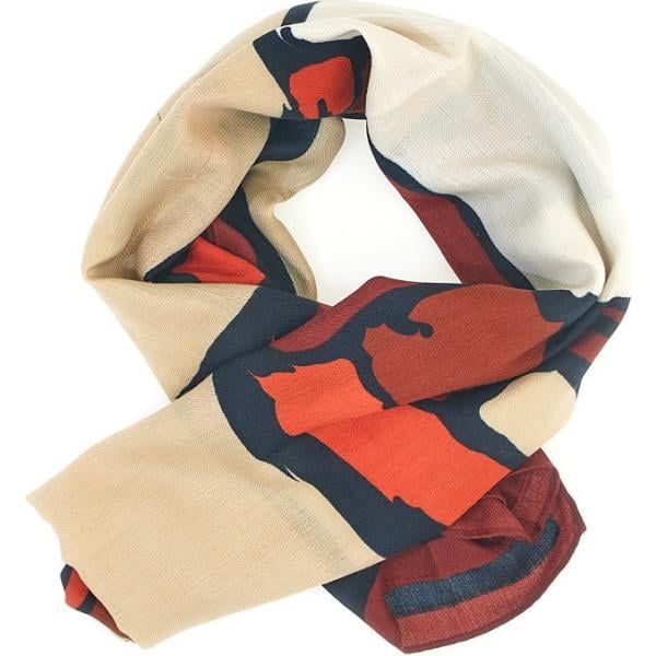 Sciarpa da donna in viola scuro geometrica con frange lungo