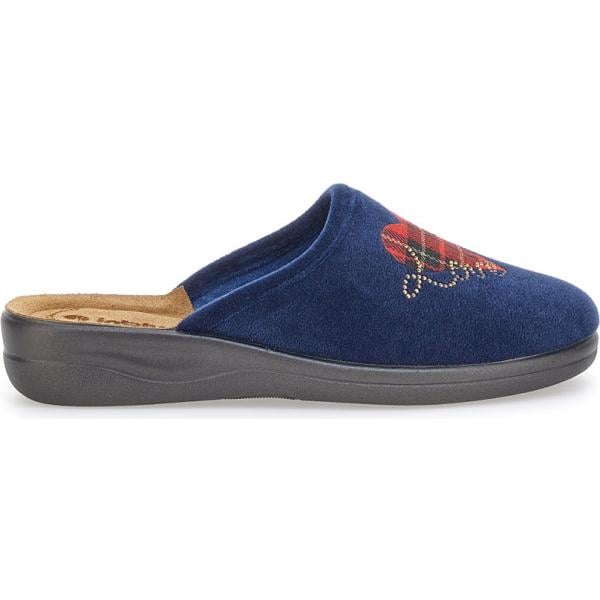 Pantofole da donna in grigio scuro a quadri con tacco zeppa