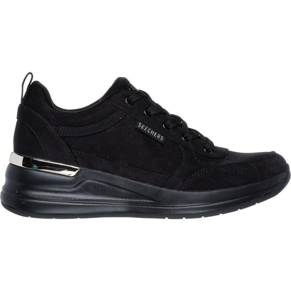 Sneakers da donna in nero pece con tacco zeppa vegan con lacci