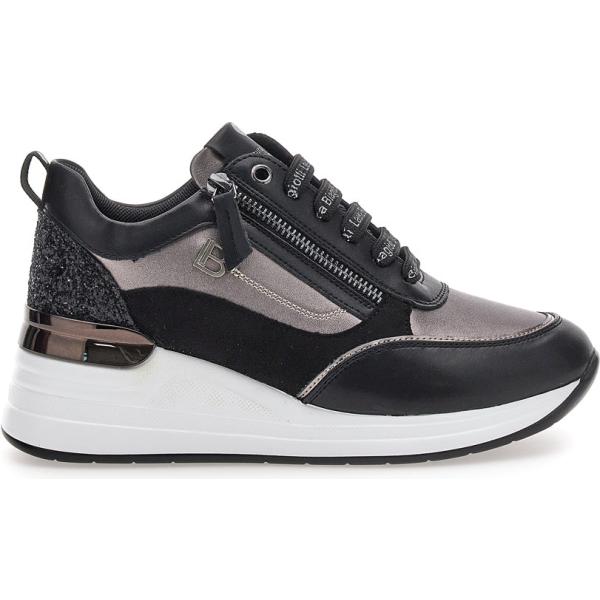 Sneakers alte da donna in marrone scuro con glitter con zip