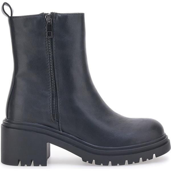 Anfibi da donna in nero pece con tacco con zip