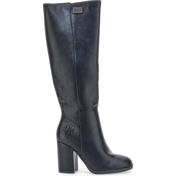 Stivali sopra il ginocchio da donna in nero pece con tacco con zip