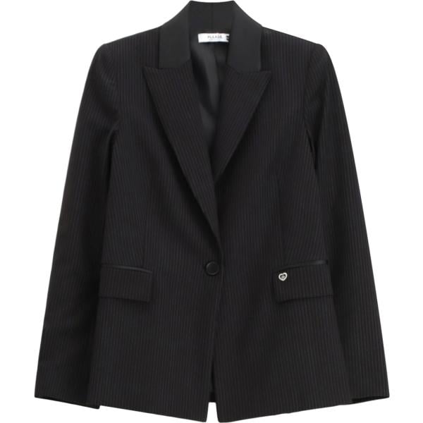 Giacca da donna in nero pece a righe monopetto con bottoni