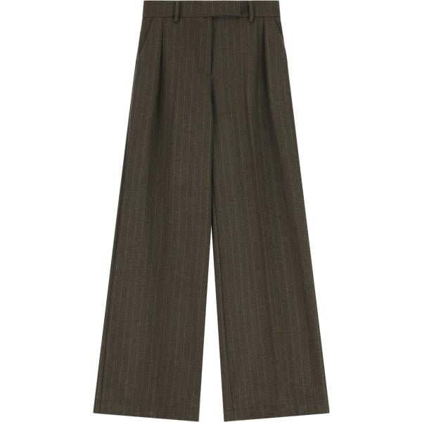 Pantaloni a palazzo da donna in verde oliva a righe a vita alta